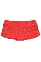 Crochet skirted hipster bottom features a ruffled hem and moderate coverage.